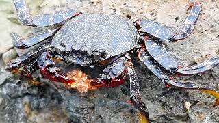 Teneriffa- Rote Felsenkrabbe beim fressen beobachtet