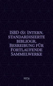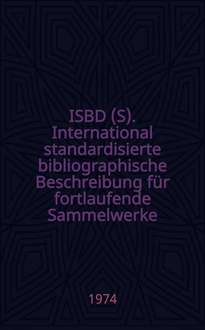 ISBD (S). International standard bibliographic description for serials : Recommended by the Joint working group on the intern. standard bibliographic description for serials set up by the IFLA Comm. on cataloguing and the IFLA Comm. on serial publications