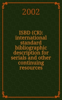 ISBD (S). International standard bibliographic description for serials : Recommended by the Joint working group on the intern. standard bibliographic description for serials set up by the IFLA Comm. on cataloguing and the IFLA Comm. on serial publications / Intern. federation of libr. assoc. IFLA. Comm. on cataloguing. - London, 1974. - X, 36 с. ; 30 см