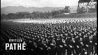 Taiwan (Formosa). Various shots of forces of Chiang Kai Shek's armies at annual parade. LV. President of nationalist China, Chiang Kai Shek and Madame ...