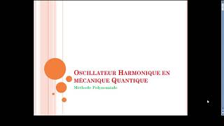 Oscillateur Harmonique Quantique-méthode polynomiale