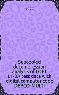 Namatame K., Kobayashi K. Subcooled decompression analysis of the ROSA and the LOFT semiscale blowdown test data with the digital computer code DEPCO-MULTI / [By] Ken Namatame a. Kensuke Kobayashi. - Tokai (Ibaraki), 1975. - [2], VI, 31 с. : ил. - ([Information and guiding booklets] / Japan atomic energy research inst. ; M-6340). - Библиогр.: с. 31
