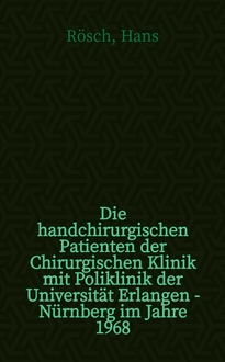 Pfeiffer P. Die handchirurgischen Patienten der Chirurgischen Klinik mit Poliklinik der Universität Erlangen-Nürnberg im Jahre 1967 : Inaug.-Diss. ... der ... Med. Fakultät der ... Univ. Erlangen-Nürnberg / vorgelegt von Peter Pfeiffer ... - Erlangen, [1970]. - [6], 39 с. : ил. ; 20 см