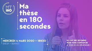 Toutes les ressources pour voter : https://bit.ly/mt180-rennes2020 Ma Thèse en 180 secondes est un concours permettant aux doctorants de présenter leur sujet ...