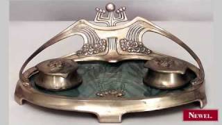 http://www.newel.com/PreviewImage.aspx?ItemID=7060 - Newel.com: Antique French Art Nouveau bronze dore double inkwell with floral design and green ...