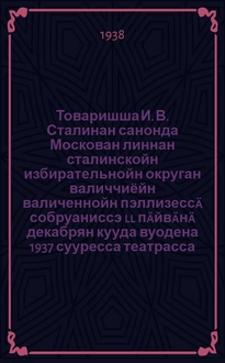 Санонда ВКП(б)-н XVIII съездал мартан 13 п-нä 1939 в = Речь на XVIII съезде ВКП(б) 13 марта 1939 г.