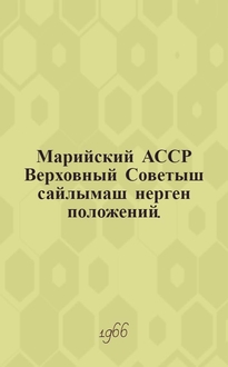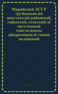 Марийский АССР-ысе шемер депутат-влакын сельский, поселковый Советышт нерген Марийский Автономный Советский Социалистический Республикын законжо : Мар. АССР Верх. Сов. шымше созывшын визымше сессийже 1968 ий 27 дек. луктын = Закон Марийской АССР о выборах в сельские, поселковые Советы депутатов трудящихся