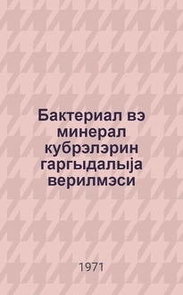 Бактериал мэншэли кэскин багырсаг хэстэликлэринин микробиоложи диагностикасына аид методик көстэришлэр / АзССР Сэhиjjэ наз. Респ. Санитариjа Маарифи еви; [сост. тибб елм. нам. Ш. h. Шаhбазов, Р. Э. Агаjева]. - Бакы : Респ. Санитариjа Маарифи еви, 1978. - 42 c. : чэд. ; 20 см
