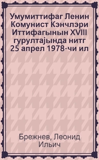 Брежнев Л. И. Умумиттифаг Ленин Комунист Кэнчлэри Иттифагынын XVII гурултаjында нитг 23 апрел 1974-чу ил / Л. И. Брежнев. - Бакы : Азэрнэшр, 1974. - 23 с. : шэк. ; 18 см