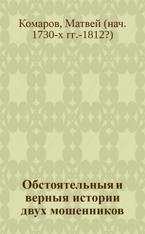 Обстоятельныя и верныя истории двух мошенников: перваго российскаго славнаго вора, разбойника и бывшаго московскаго сыщика Ваньки Каина со всеми его сысками, розысками, сумозбродною свадьбою и разными забавными его песнями; втораго французскаго мошенника Картуша и его сотоварищей