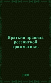 Краткия правила российской грамматики, : Собранныя из разных российских грамматик : В пользу обучающагося юношества в гимназиях Императорскаго Московскаго университета. - 6-е изд. - М. : Тип. Комп. типогр., 1790. - 94 с. ; 12° см
