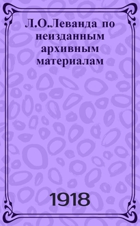 Бухбиндер Н.А. Л.О.Леванда по неизданным архивным материалам : (К 30-летию его кончины) : (1888-1918) / Н.А.Бухбиндер. - Пг. : Евр. б-ка, 1918. - 27 см