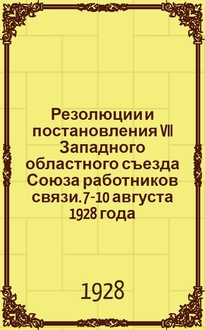 Союз рабочих полиграфического производства СССР. Резолюции, принятые VII Московским губернским съездом печатников : 6-13 янв. 1926 г / Моск. губ. отд. СРПП СССР. - М. : Губотд., [1926]. - 31 с. ; 22 см