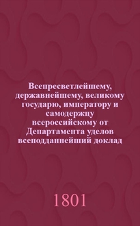 Всепресветлейшему, державнейшему, великому государю, императору и самодержцу всероссийскому Коммиссии о снабжении резиденции припасами всеподданнейший доклад. : О доходах и расходах Московской столицы : Высочайше утвержденный 14 марта 1800 г. докл. Комиссии о снабжении резиденции припасами. В данной книге описывается