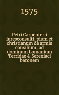 Petri Carpentarii, I.C., Epistola ad Franciscum Portum Cretensem in qua docetur persecutiones ecclesiarum Galliae, non culpa eorum qui religionem profitentur, sed eorum qui factionum & conspirationum (quae causa appellatur) fovebant, accidiβe. Et ad Petri Carpentarii causidisci virulentam epistolam responsio Francisci Porti Cretensis, pro causariorum, quos vocat, innocentia
