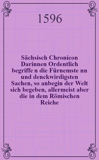 Dresser M. Sächsisch Chronicon : Darinnen ordentlich begriffen die jtzige Händel in Ungern, Franckreich, Polen, Lieffland. - Wittenbergk [Wittenberg], 1596. - 2° см