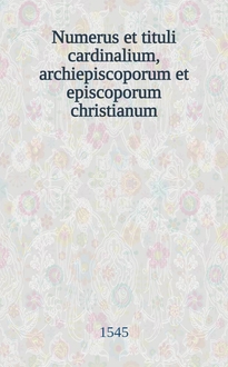 Numerus et tituli cardinalium, archiepiscoporum & episcoporum christianorum.; Taxae et valor beneficiorum regni Galliae cum taxis cancellariae apostolicae, necnon sacrae poenitentiariae itidem apostolicae: quibus addita sunt multa quorum indicem sequenti pagella reperies. - [Parigi (Paris)] : apud Galeotum a Prato, 1533. - [8], 194, [2] л. ; 8° (13 см) см. - Указ.: л. [2-7] (ряд 1-й)