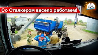 Остался на МАЗе работать на току. У Акрос-530 лопается измельчитель. Горох подходит к концу.