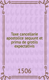 Taxe Cancellarie Apostolice incipiunt.