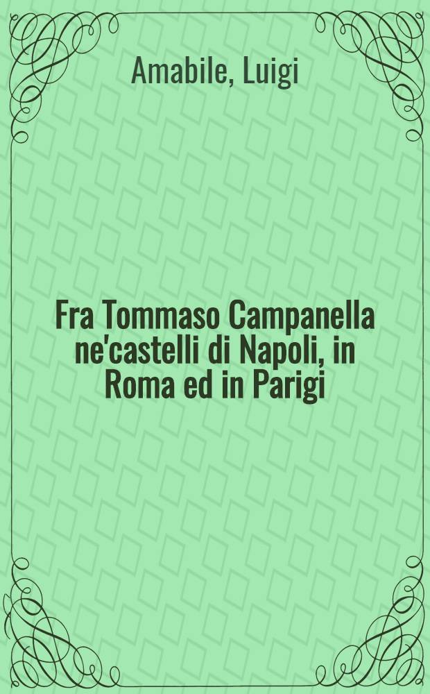 Fra Tommaso Campanella ne'castelli di Napoli, in Roma ed in Parigi : Narrazione con molti documenti e 10 opuscoli del Campanella inediti