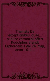 Brandt R. Themata De exceptionibus, quae ... publico certamini offert Rudolphus Brandt Erphordensis die 24. Maji, anno 1611. .... - Basileae [Basel] : Typis Ioan. Iacobi Genathii, [1611] // Volumen II. Disputationum iuridicarum .... - Basileae [Basel], 1616
