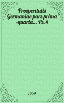 Prosperitatis Germaniae pars prima[-quarta] ... Ps. 1 : ... In qua de vini, frumenti & ligni concentratione, eorundemque utiliore, quam hactenus, usu agitur ...