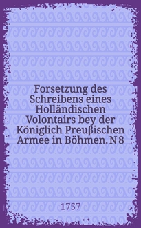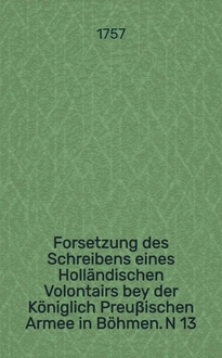 GV . - Пер. с фр. яз. Загл. оригинала: Suite de Lettres d'un particulier à un de ses amis sur l'invasion de la Saxe, faite par le roi de Prusse. Авт. установл. по аналогии с изд. на фр. яз., указ. в: GV.- [Bd.] 87.- S. 311. Переведено также под загл.: Fortsetzung der Briefe einer Privat-Person an einen seiner Freunde, über den Einfall in Sachsen, so durch den König von Preuβen unternommen worden