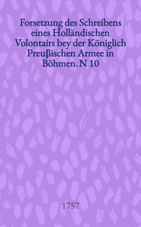 Forsetzung der Schreiben einer Privatperson an einen guten Freund, über den Einfall des Königs von Preuβen in Sachsen. В книге говорится