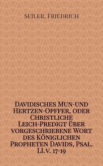 Davidisches Seelen-Gespräch, oder Christliche Leich-Predigt, über Psalm 103.1/2. "Lobe den Herrn meine Seele, und was in mir ist seinen heiligen Nahmen" etc., gehalten in Basel ... den 17. Junii 1703. ... bey Bestattung der ... Frauen Maria Byrrin ... von Friederich Seyler ...