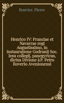 Henrico IV. Franciae et Navarrae regi Augustissimo, in instauratione Godranij Soc. Iesu collegij, panegyricus, dictus Divione à P. Petro Roverio Avenionensi, e Soc. Iesu : Additae notae, & primigeniae ac revertentis fortunae characteres