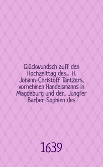 Spindler J. Glückwundsch zu der Römischen Käiserlichen Crönung, um Friede-Fest dieses 1658. Jahrs, zu Obern-Sontheim, Löbl. Herrschafft Limpurg, in gehaltener Predigt abgelegt, und aff Wohlmeinen guthertziger Christen zum Druck gegeben von M. Johanne Spinglero, Dienern am. Wort Gottes daselbst. - Jn Schwäbischen Hall [Schwäbisch Hall] : Gedruckt bey Hans Reinhard Laidigen, 1658. - 44 с. ; 4°(20 см) см