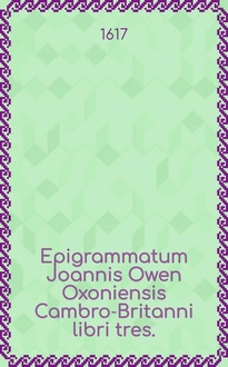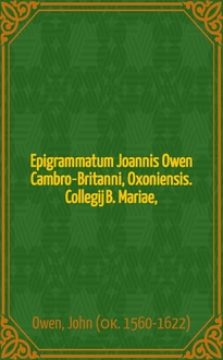 Owen J. Epigrammatum Joannis Owen Cambro-Britanni Oxoniensis. Ad tres mecaenates, libri tres. : Ad Edoardum Noel equitem & baronetum, unus. Ad Gulielmum Sidley equitem & baronetum, alter. Ad Rogerum Owen equitem auratum, tertius. - Lipsiae [Leipzig] : sumptibus haeredum Thomae Schüreri excudebat Fridericus Lanckisch, 1620. - [34] л. ; 12°(13 см) см