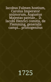 Fulmen Orientis Joannes III. Rex Poloniarum ter maximus bellicae fortitudinis gloriae Innocentii XI. solicitudino Leopoldi I. studio, ingenti Portae Otthomanicae terroro, publico christiani orbis voto, belli orthodoxi imperator electus, Viennae, Austriae, Pannoniae, Podoliae, Ukrainae, Valachiae, & c., & c. vindex, a populis acclamatus, Barbaricis adoratus, cladibus, inter festivos triumphantis Europae plausus a devinctissima maiestatia suae Societatis Jesu Polona, in saeculorum memoriam & regum exempla relatus.