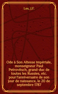 Ode dédiée à Sa Majesté l'impératrice souveraine de toutes les Russies etc. par tout l'ordre de Saint Dominique à son arrivée à Polocque 1780. - S. l. : S. n., [1780]. - 8 с. ; 4° см