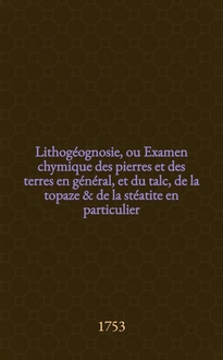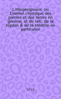 Lithogéognosie, ou Examen chymique des pierres et des terres en général, et du talc, de la topaze & de la stéatite en particulier : Avec une dissertation sur le feu & sur la lumière : Ouvrages traduits de l'allemand