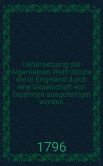 Uebersetzung der Algemeinen Welthistorie die in Engeland durch eine Geselschaft von Gelehrten ausgefertiget worden : Nebst den Anmerkungen der holländischen Uebersetzung auch vielen neuen Kupfern und Karten. Th. 21