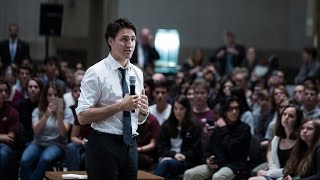 3 novembre 2016 Le premier ministre Trudeau et des ministres participent à une séance de discussion publique avec des élèves du secondaire à Ottawa.