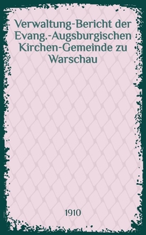 Verwaltung-Bericht der Evang.-Augsburgischen Kirchen-Gemeinde zu Warschau