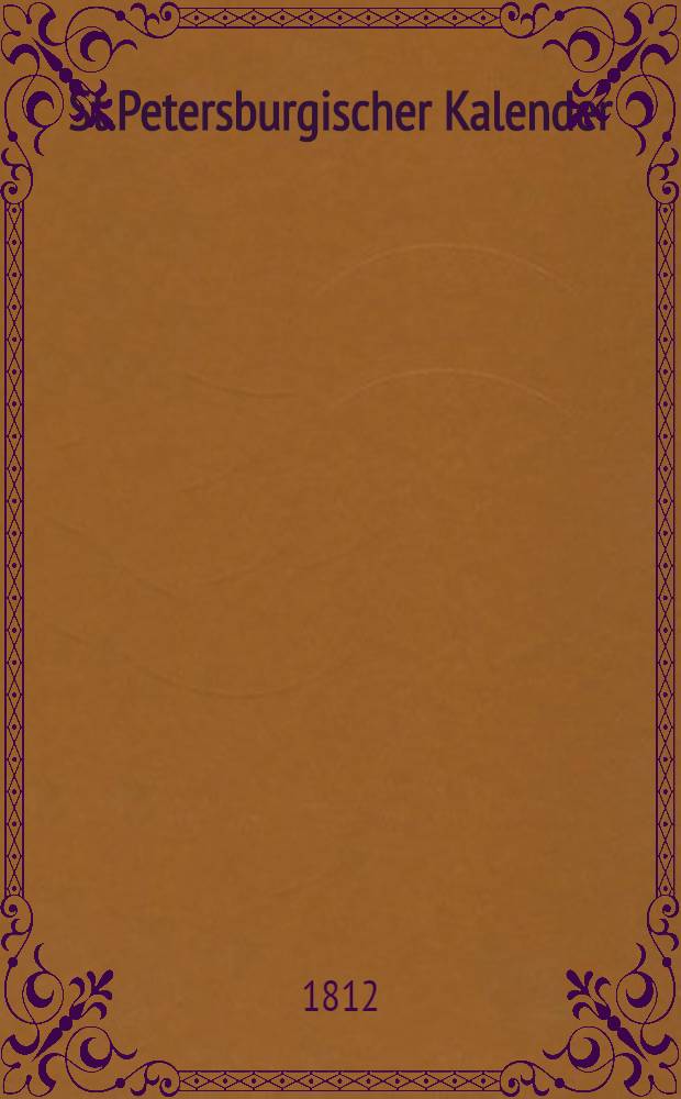 St.Petersburgischer Kalender : Aerichtet auf die Vornehmsten Orte des Russischen Reiches. 1813:. - 1812