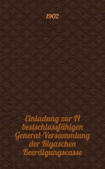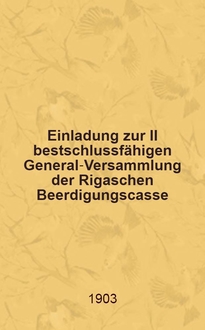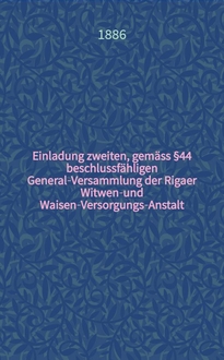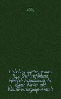 Einladung zweiten, gemäss §44 beschlussfähligen General-Versammlung der Rigaer Witwen-und Waisen-Versorgungs-Anstalt