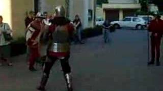 Pragnę uświadomić wszystkich oglądających ten film iż: 1. To był mój pierwszy pojedynek na jakiekolwiek miecze; 2. Zbroje używane w tym pojedynku są stare i ...