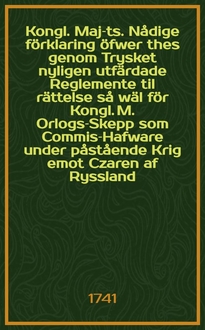 Kongl. May:tz Placat angående pärle-fiskerierne i Est-Lijf- och Ingermanland