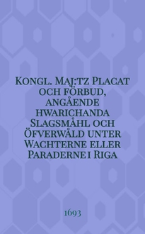 Kongl. May:tz Placat angående pärle-fiskerierne i Est-Lijf- och Ingermanland. - Stockholm, 1694. - 4° см