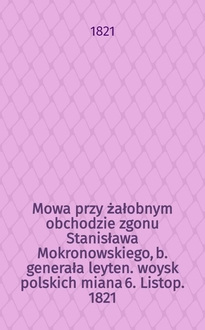 Prusinowski A. Mowa żałobna na nabożeństwie za duszę Adama Mickiewicza / Aleksy Prusinowski. - Grodzisk, 1856. - 8° см