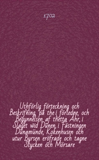 Uthförlig Relation om den til Peipus Siön uth-commanderade Swenske Flotte. - S.l., 1702. - 4° см