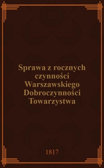 Sprawa z rocznych czynności warszawskiego dobroczynności towarzystwa : Zdanie sprawy z działań i obrotu funduszów. Za rok ..
