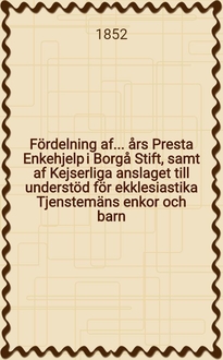Fördelning af kostnaderna för högvördige prestaståndets kansli under landtdagen från den 15 September 1863 till 15 Mars 1864, uppgjord af det genom ståndets beslut af den 6 November 1863 i sådant afseende tillsatta utskott. - Helsingfors, 1864. - 8° см