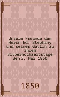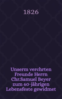 Sodoffsky W. Unserm Heinr. Dorn zum 6. Aug. 1843 : Pièce de vers / Wilh. Sodoffsky. - Riga, 1843. - 8° см