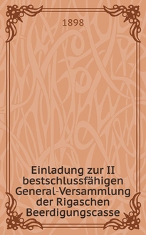 Einladung zur Beschickung der 7 allgemeinen Geflügel-Ausstellung, veranstaltet vom Rigaer Geflügelzucht-Verein. - Riga, 1899. - 8° см