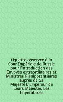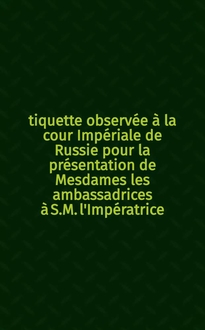 Étiquette observée à la cour Impériale de Russie à l'égard de Mesdames les ambassadrices